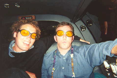 Mr Slate and Mr Magenta, with the glasses and beads, Magenta doesn't intend to miss out tonight. |