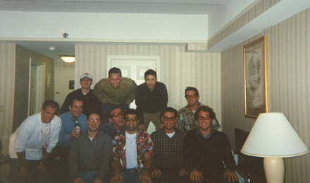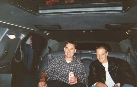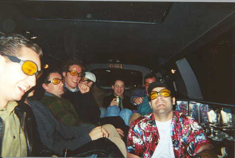 The Stretch Limo, everbody is getting into the mood. The glasses were a must and were a hit with everyone. Left To Right Mr K, Mr D, Mr Slate, Mr C, Mr Cool, Mr Magenta and in Front Right Spotlight -- Mr Blonde. Let the Night Begin .....