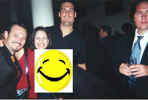 Watched on by an ex 'Gladiator' from the TV show Gladiator, Smiley inspects Miss Red's top for any left over Mc Donalds. Mr Slate, is calmly watching the crowd .. I think he spots Mr Indigo at work - talking politics perhaps? |